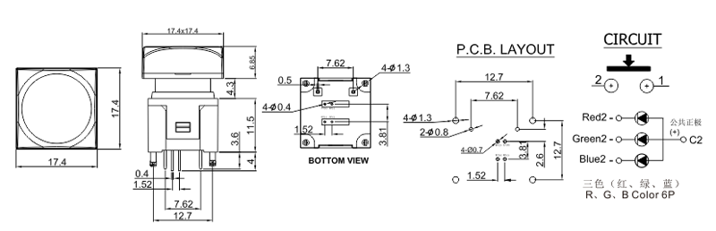 帶燈按鈕開關,LED燈有單燈,雙燈以及RGB全彩,按鍵尺寸有多種規格,可根據各大需求任意定制各種絲印,這類按鍵常用于廣播控制臺,視頻音頻處理器等。