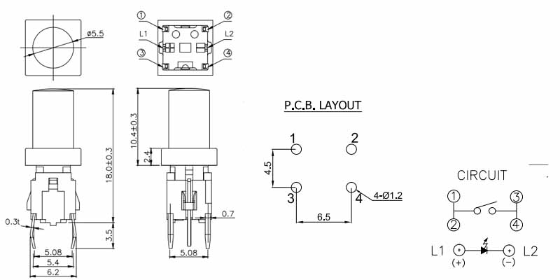 • 帶燈輕觸開關TS1-00-6AR1-2C-2S 帶燈輕觸開關TS1-00-6AR1-2C-2S