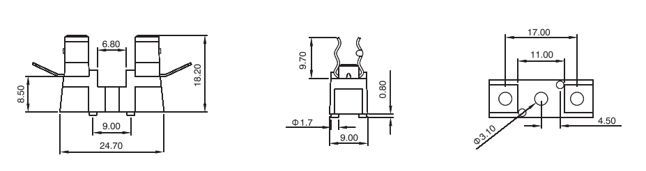 保險絲座FH系列,保險管座常見于PCB固定和螺母固定兩種方式,電流10-30A不等,配置的保險管5*20mm和6*30mm,擁有UL CE CQC認證,廣泛用于汽車行業,家電等