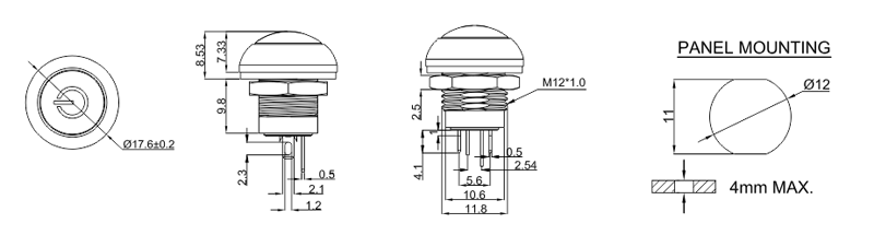 防水按鍵開關PB12-2-M-RB-W-1A